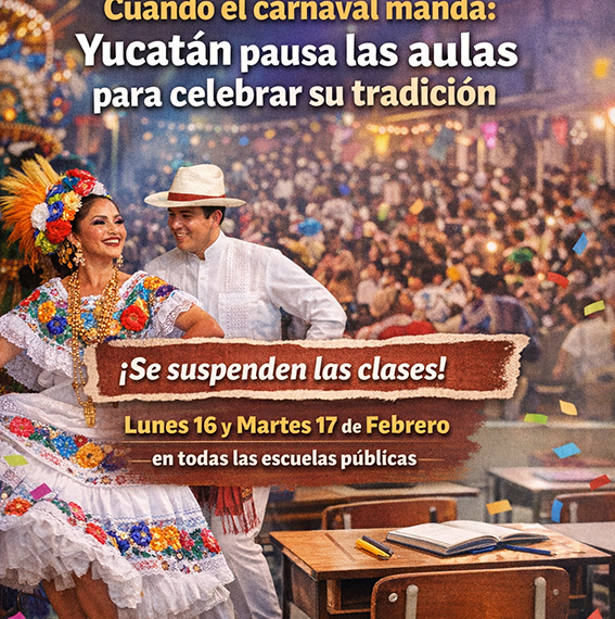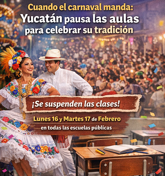 En Yucatán, el calendario escolar también sabe bailar al ritmo de los tambores. Este martes, la Secretaría de Educación del Gobierno del Estado (Segey) confirmó lo que para muchas familias ya era una tradición esperada: las clases serán suspendidas los días lunes 16 y martes 17 de febrero en todas las instituciones públicas del sector educativo, con motivo de las festividades del carnaval.