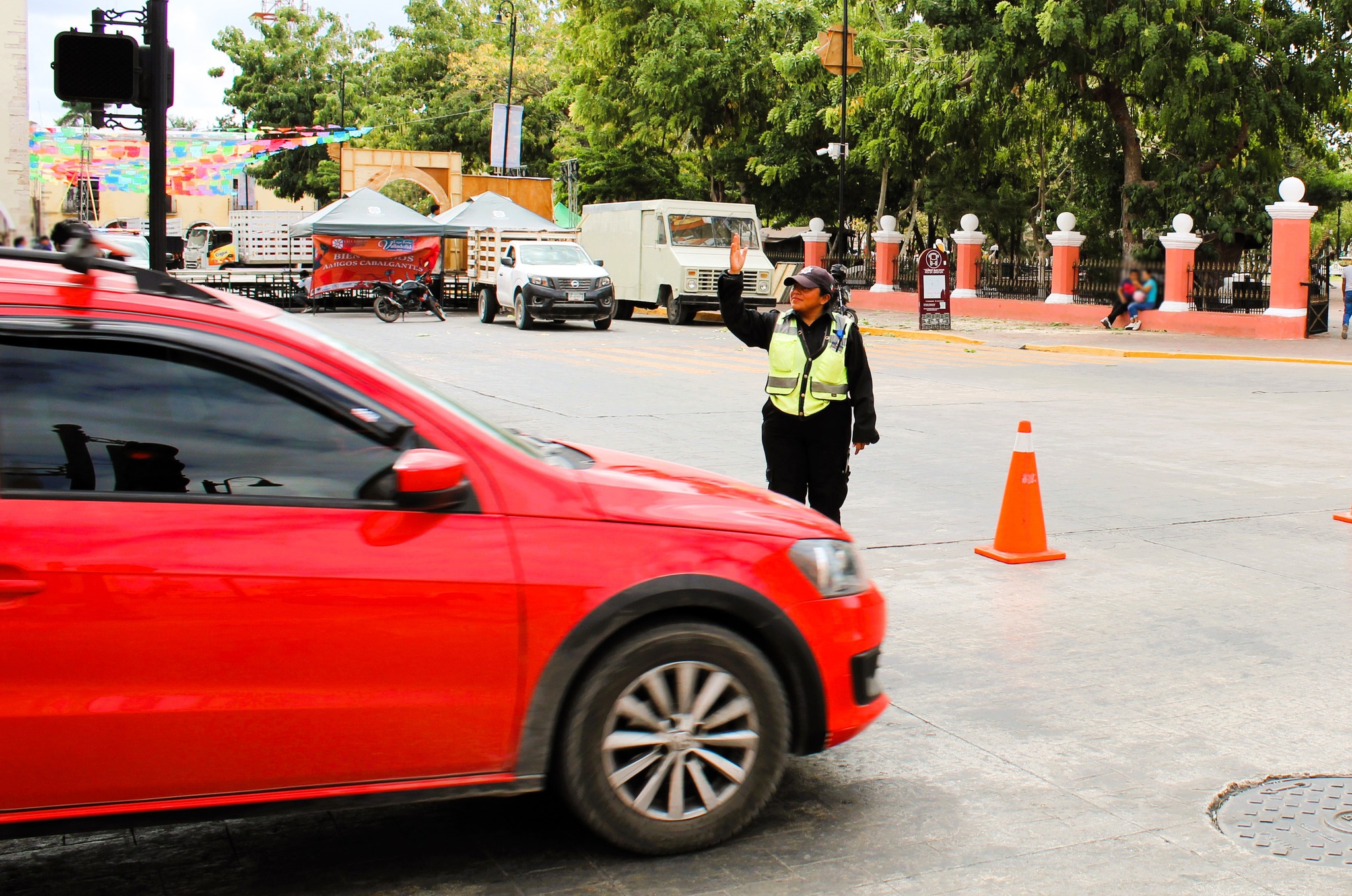 El operativo comenzó de inmediato. Del recinto ferial, los oficiales pasaron a reforzar la vigilancia en el Centro Histórico, donde agentes de Tránsito y Vialidad coordinan el flujo vehicular con precisión. La meta es clara: que peatones y familias puedan disfrutar del colorido carnaval sin contratiempos.