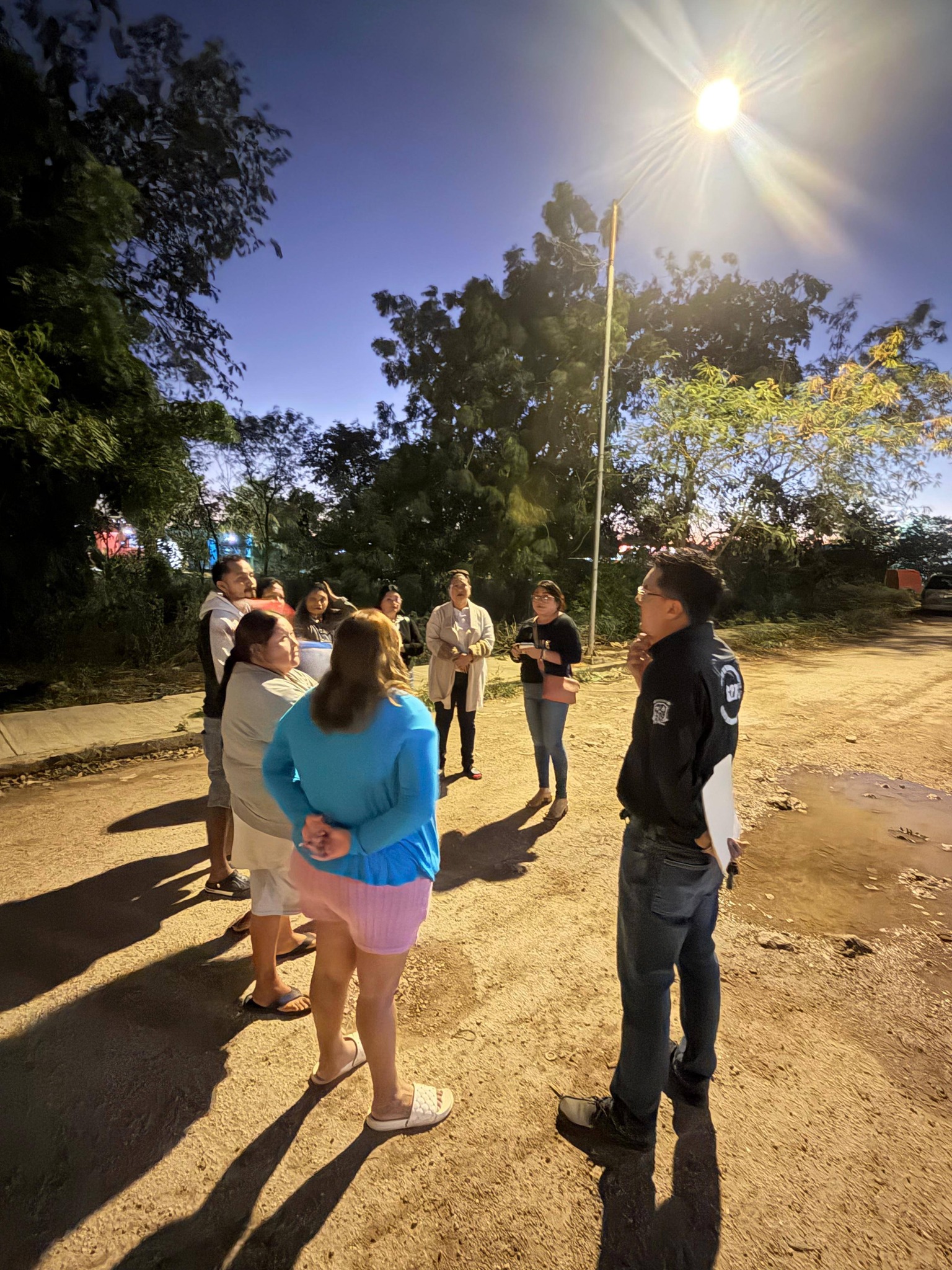 Durante el recorrido estuvo acompañado de su esposa, la Mtra. Leslie Paz, así como de vecinas y vecinos del fraccionamiento, con quienes sostuvo un diálogo directo. En conjunto con el equipo del Programa de Evaluación Municipal, se levantó información y se contrastó la planeación institucional con el día a día de las colonias.