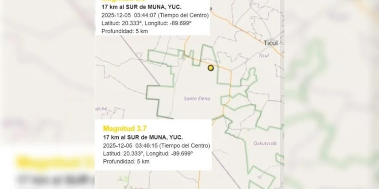 El estado de Yucatán registró durante la madrugada de este viernes dos sismos de baja magnitud, un fenómeno poco común en la región, según informó el Servicio Sismológico Nacional (SSN). Ambos eventos tuvieron como epicentro una zona al sur del municipio de Muna.