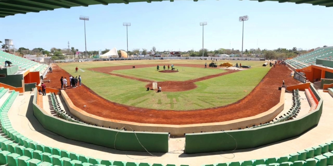 Este lunes, la escena en Kanasín parecía sacada de una película de acción, con un ejército de trabajadores dedicados a convertir lo que una vez fue un campo de béisbol amateur en un majestuoso estadio.