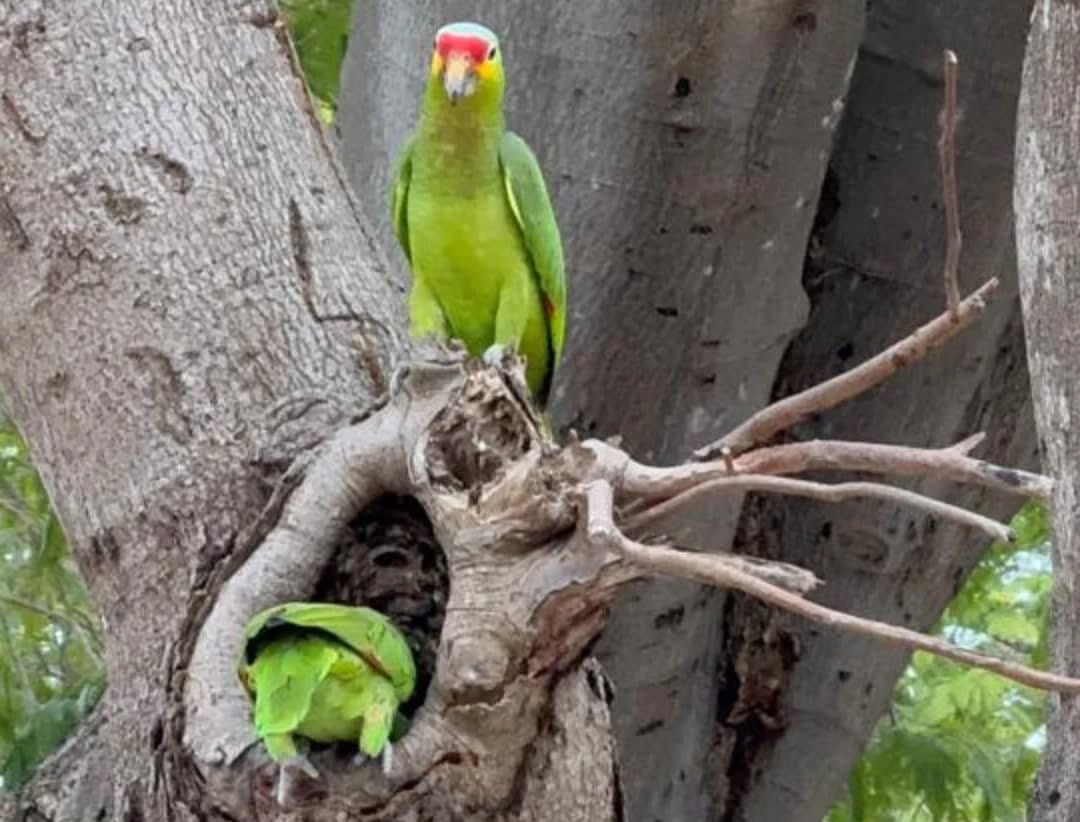 Los loros urbanos no sobreviven al azar. El estudio documentó que utilizan 36 especies de árboles y plantas para alimentarse, descansar y anidar, entre ellas el chaká, mango, almendro, flamboyán, maculís, tamarindo, zapote y cítricos, confirmando la importancia del arbolado urbano como refugio de biodiversidad.
