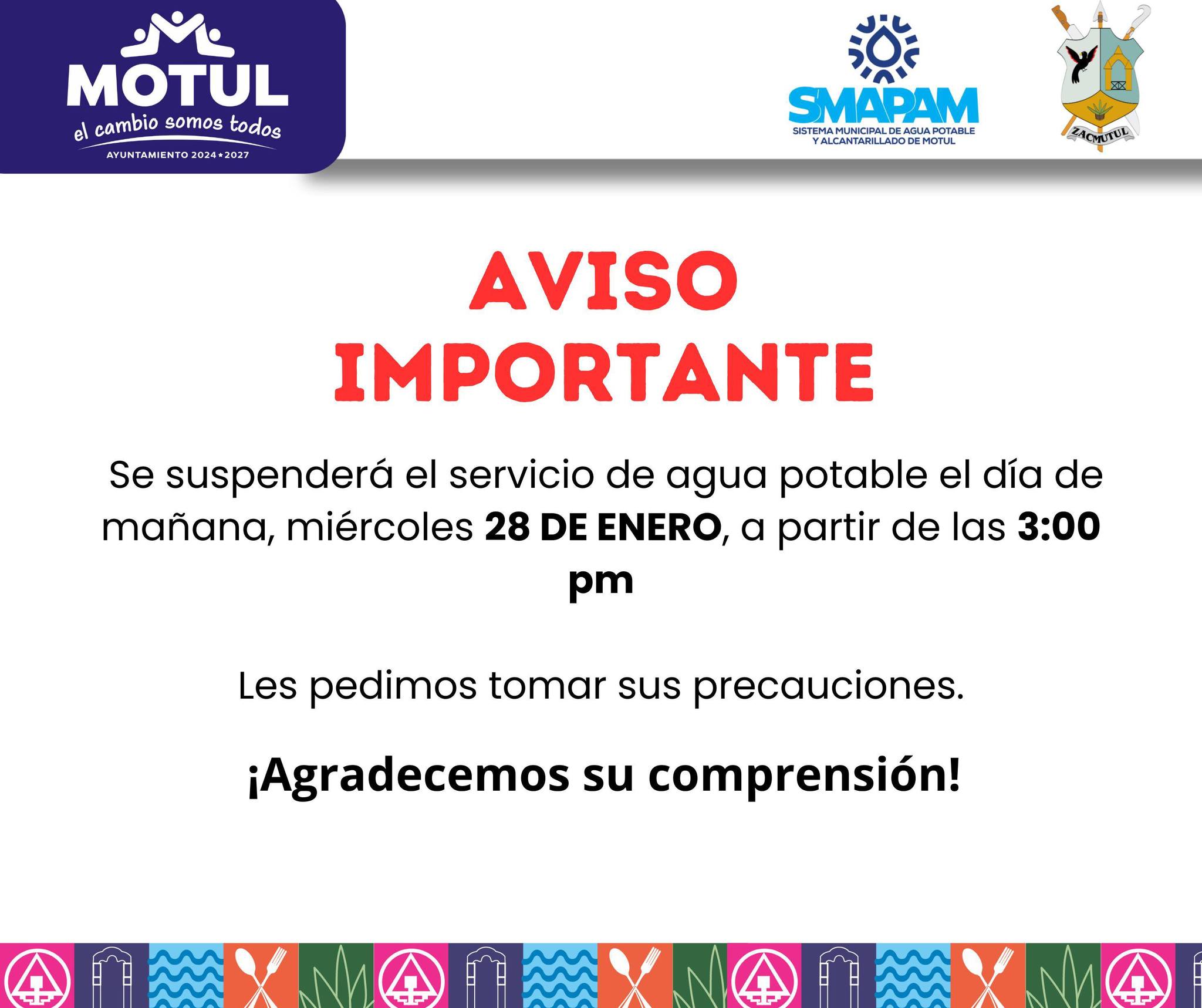 El Ayuntamiento exhortó a la ciudadanía a tomar previsiones y almacenar agua con anticipación, al tiempo que agradeció la comprensión de las y los motuleños, subrayando que estas acciones buscan mejorar la calidad y eficiencia del servicio de agua potable en beneficio de las familias del municipio.
