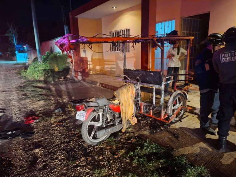 Noche de furia en Kanasín: discusión de pareja termina con mototaxi reducido a cenizas
