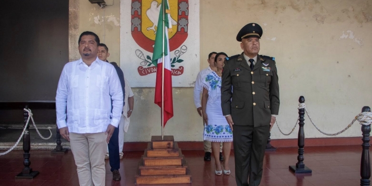 El acto no fue solo protocolario; fue un momento cargado de simbolismo. El presidente municipal, Homero Novelo Burgos, encabezó la primera Guardia de Honor acompañado de la síndica Layda Arceo Aguilar, el secretario de la comuna Manuel Castro Mendoza y el mayor de Caballería Florentino Duarte Orduño, representante del Vigésimo Regimiento de Caballería Motorizada.