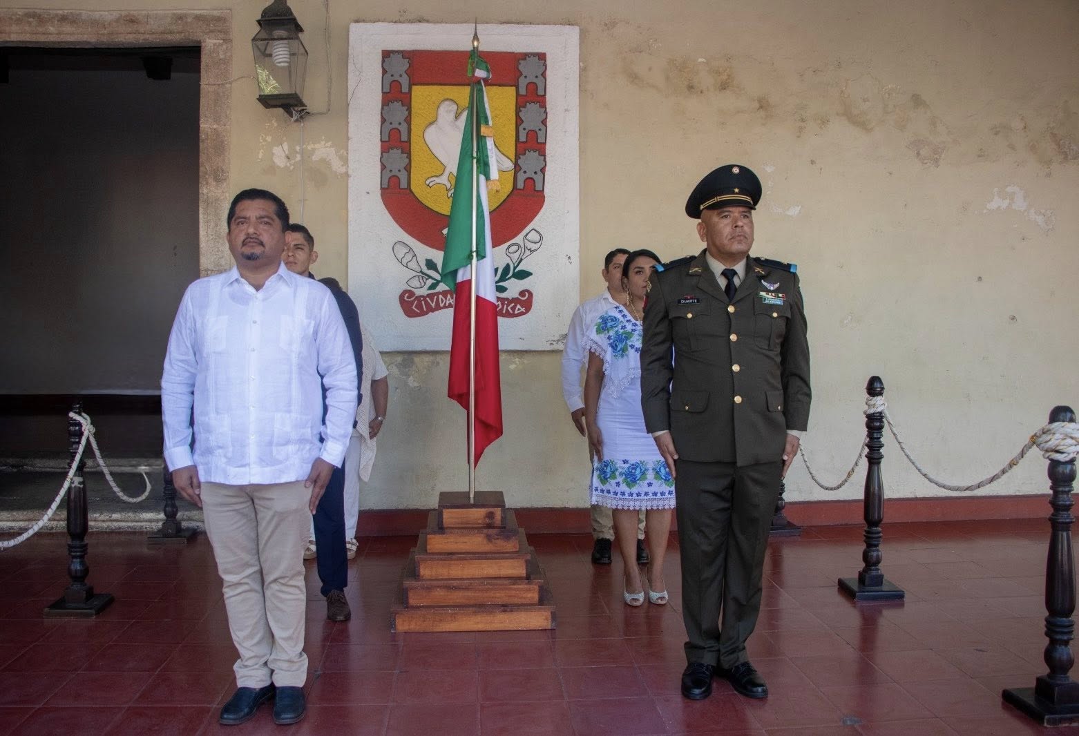 El acto no fue solo protocolario; fue un momento cargado de simbolismo. El presidente municipal, Homero Novelo Burgos, encabezó la primera Guardia de Honor acompañado de la síndica Layda Arceo Aguilar, el secretario de la comuna Manuel Castro Mendoza y el mayor de Caballería Florentino Duarte Orduño, representante del Vigésimo Regimiento de Caballería Motorizada.